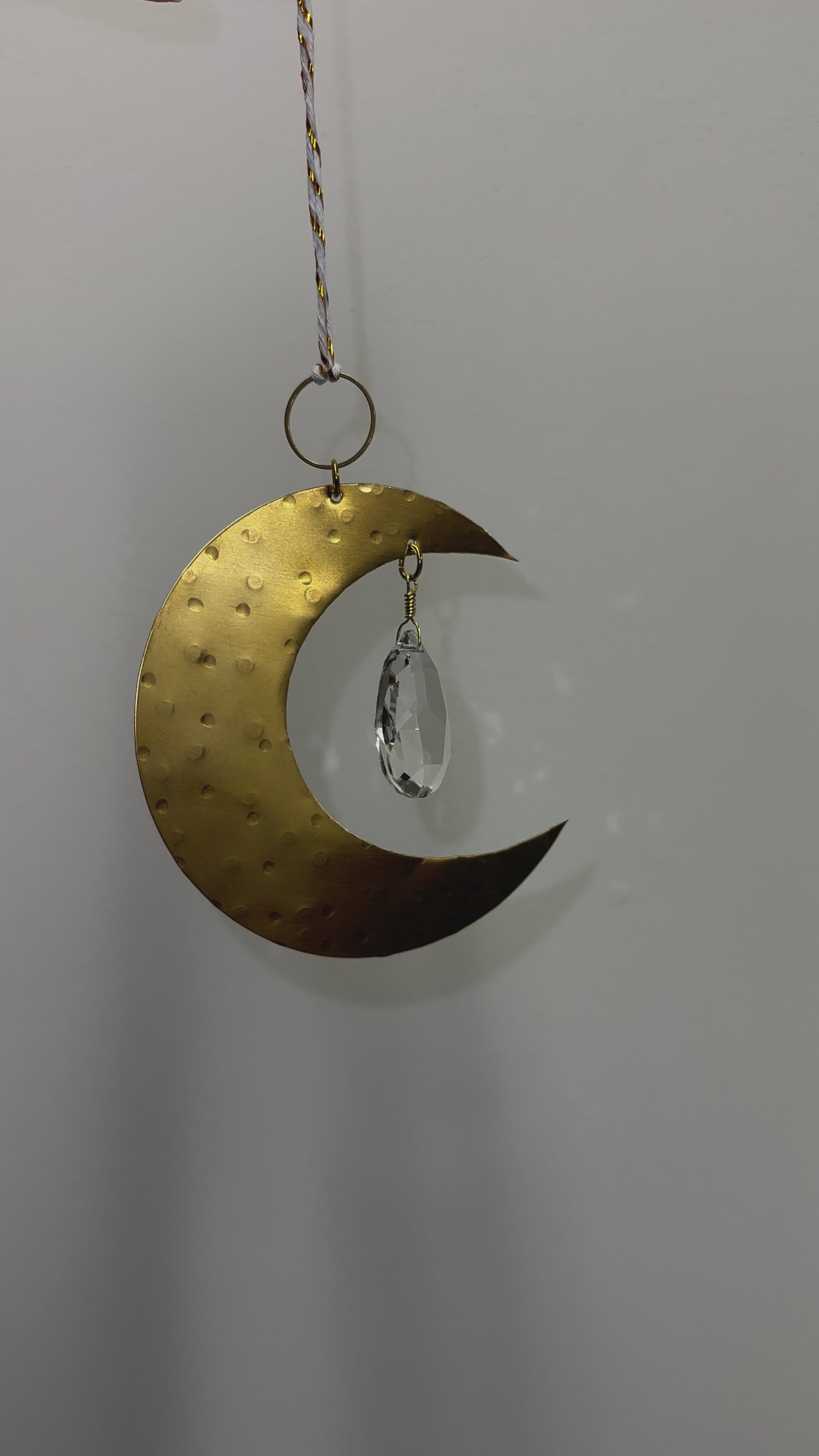 This decorative piece draws inspiration from the moon, its phases symbolizing change, evolution, and the cycles of femininity. We have combined it with a beautiful crystal drop that will catch the light and amplify it on any side of the house, creating a magical glow like stars in the sky.